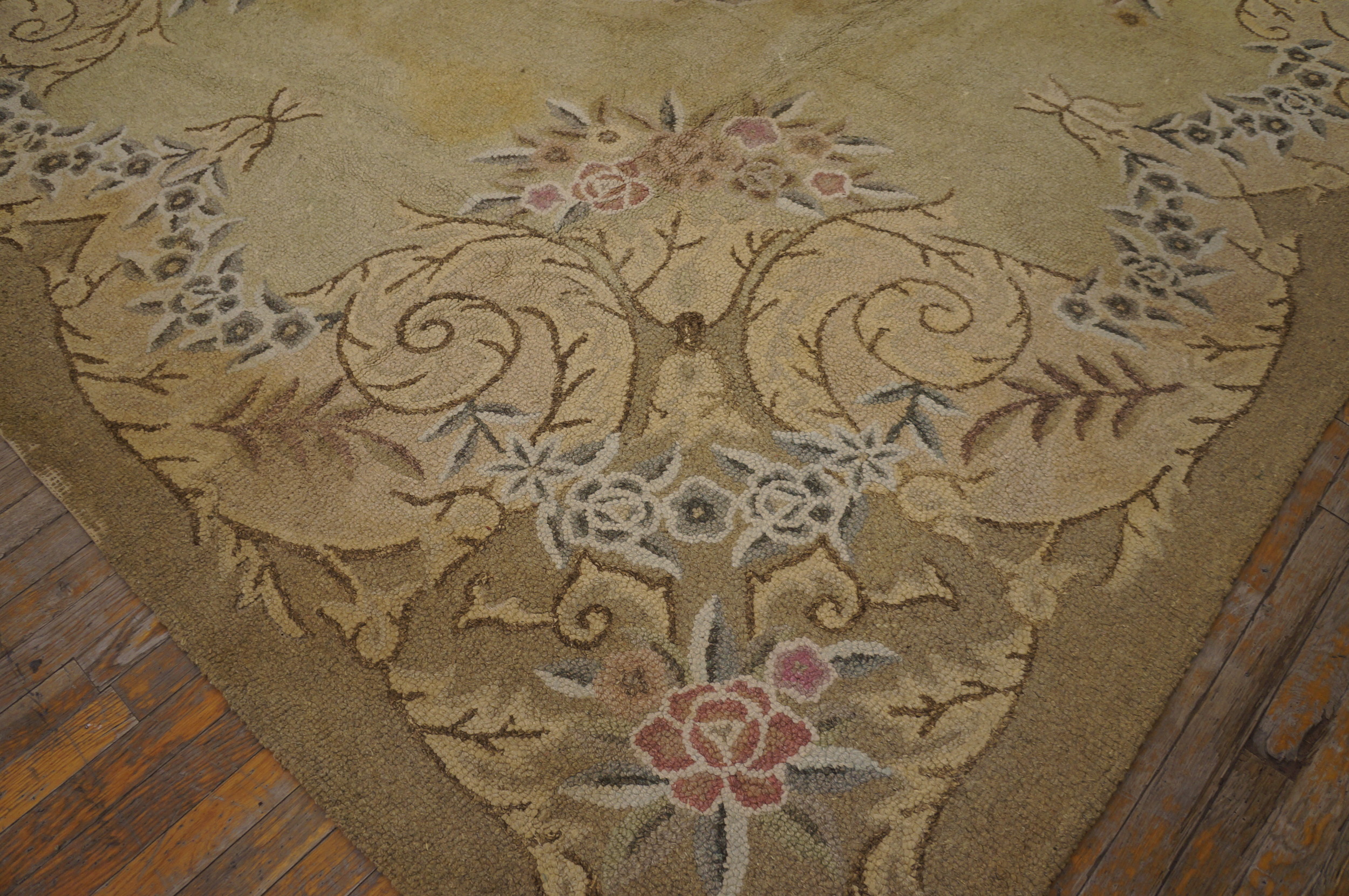 Wool Antique 1930s Ivory Room Size American Hooked Rug, Circa Date: 1930s. This exceptional textile is a prime example of an American Hooked Rug from the early 20th century, showcasing the domestic artistry popular during the Depression era. The wool construction provides a soft, textural surface ideal for high-traffic areas.