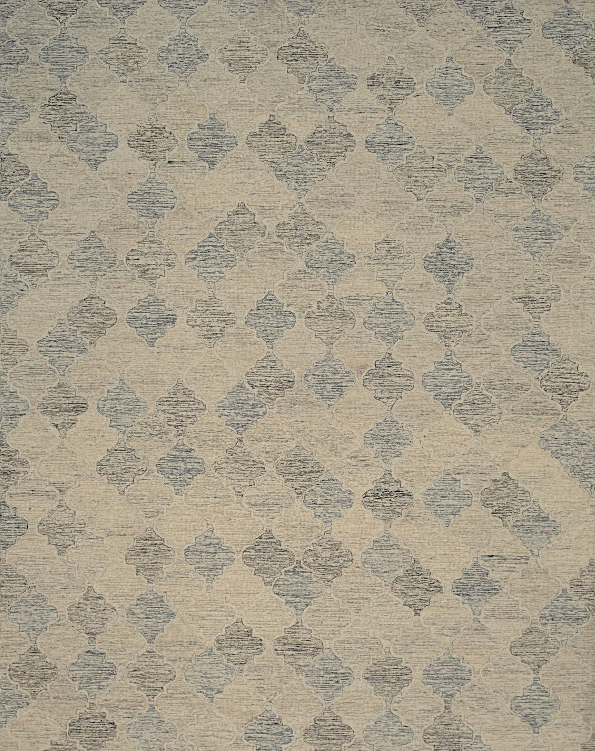 Crafted from high-quality wool using a meticulous hand-tufting technique, the Zinnia Kira boasts a luxurious texture and exceptional durability suitable for high-traffic areas. The design utilizes the classic Ogee or Quatrefoil shape, rendered in varying depths of cream and soft taupe, creating a layered, dimensional effect that shifts subtly with the light.